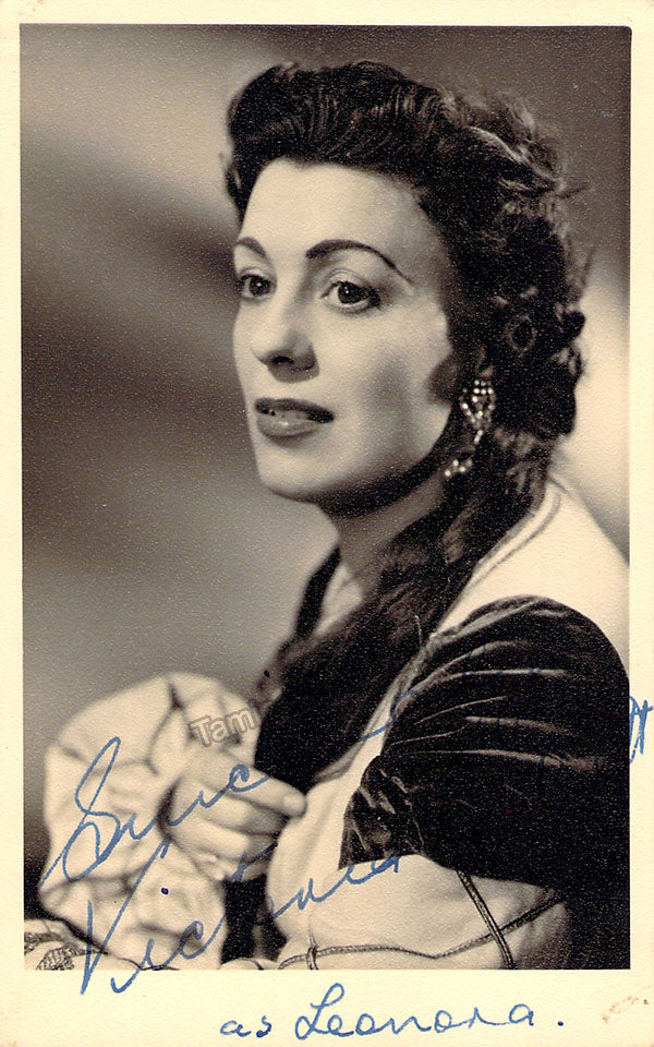English soprano (1923-1986), signed photograph, shown as Leonora in Verdi's Il Trovatore.  Stamped on verso by photographer Derek Allen, London. Size is 3.25 x 5.25 inches, in excellent condition.