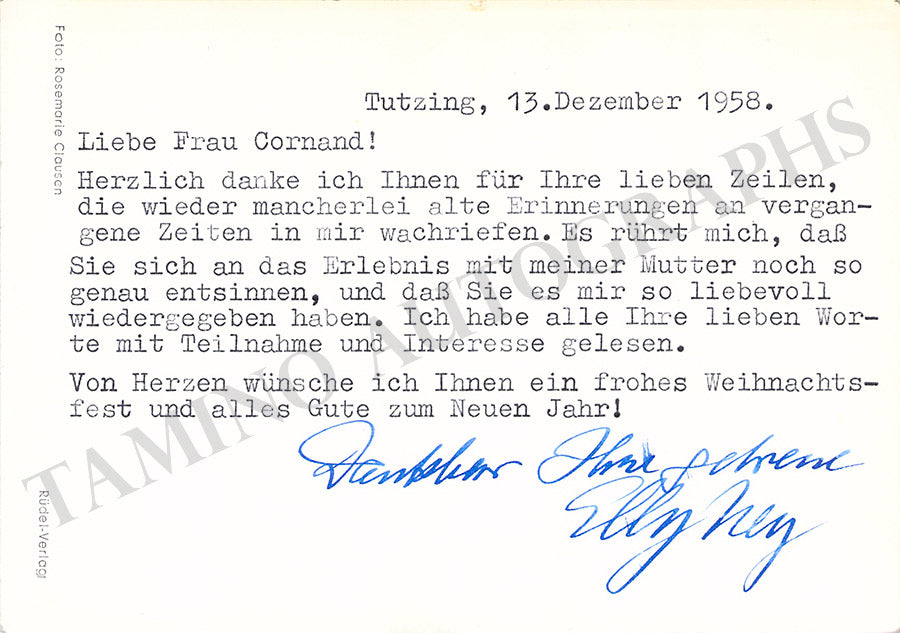Ney, Elly - Typed Letter Signed 1958 on Photo Ney, Elly - Typed Letter Signed 1958 on Photo