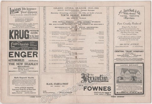 Elman, Mischa - Concert Program Met Opera House New York 1911
