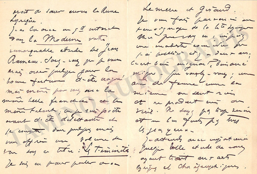 B. Marseille, Dec. 2, 1886, saying, among other things, "... I am a poet before I am a dilettante and in a few months I intend to offer you a volume of verse...". 4 written pages.