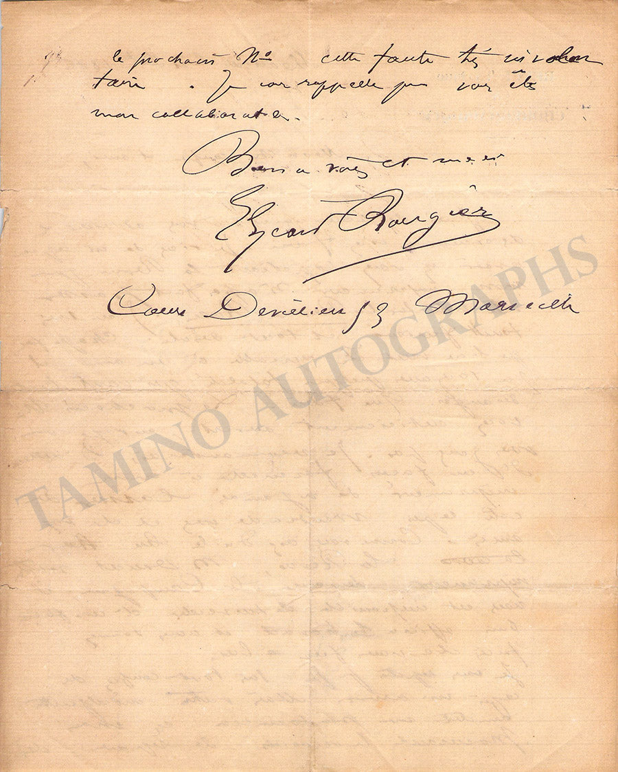 A. Marseille, 1886, sending an issue of the magazine and requesting Lapauze to write an article to be published. 1 written page.