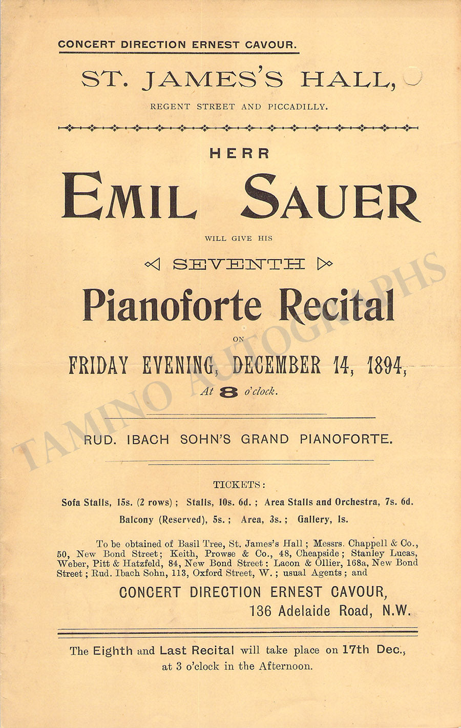 Sauer, Emil - Set of 2 Concert Programs London 1894