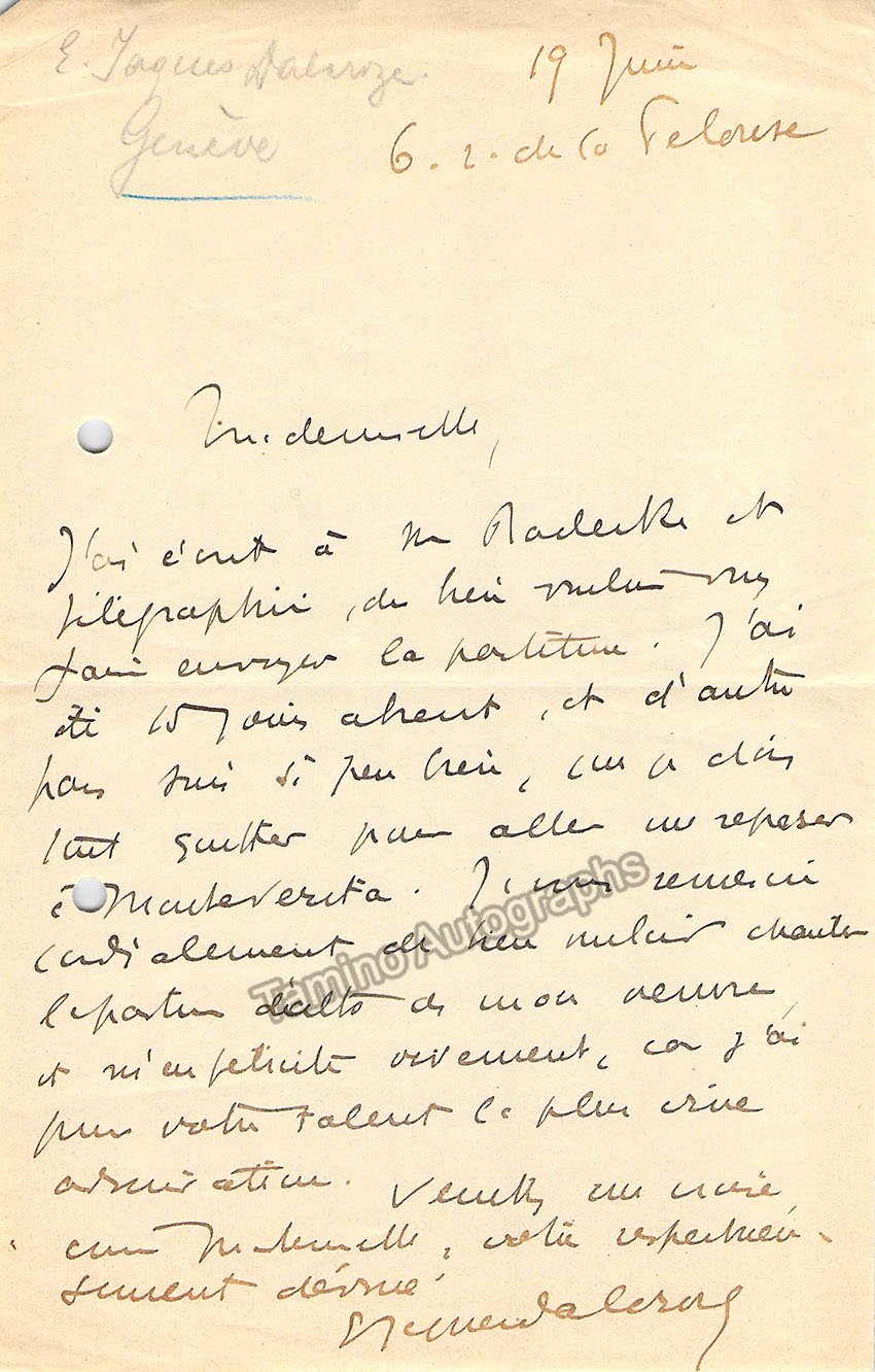 Emile Jaques-Dalcroze - Autograph Letter Signed