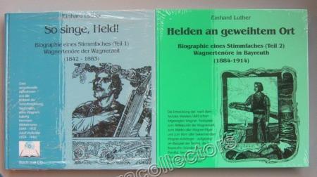 Beautiful and complete encyclopedia of all Wagner-tenors from 1842 – 1914, including all Bayreuth performances 1884 -1914. German edition, 29 x 28 cm, 1998 and 2002, set of 2 books, 830 pages, 800 illustrations and pictures. CD included. New!