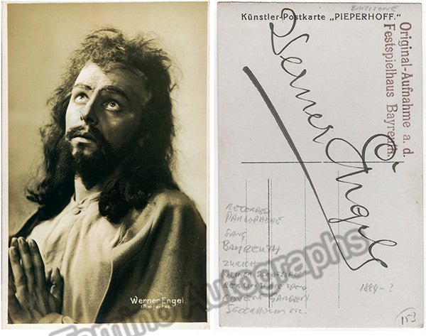 Signed photo postcard of the German baritone (1884-?) as Amfortas. Large, bold signature on verso. Size 3.25 x 5.5 inches. In excellent condition!