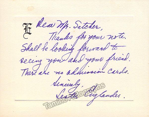 American baritone and voice teacher (1911-2000) who taught at Philadelphia's famed Curtis Institute. Autograph note signed on 1 side of a card, size is 3.5 x 4.5 inches, in excellent condition.