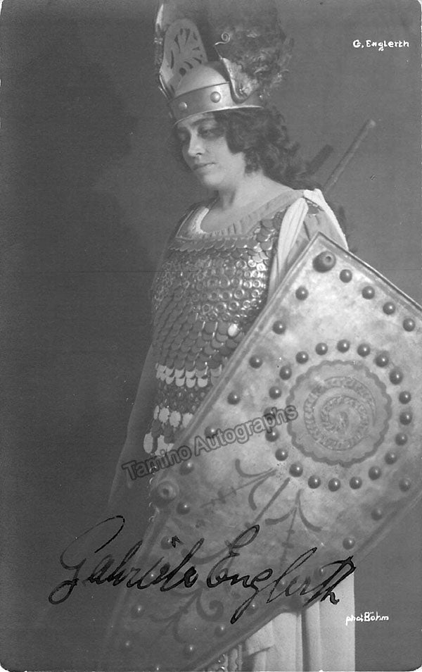 German soprano (1883-1943),  signed postcard photograph, shown as Brunnhilde in Wagner's Die Walkure.  Photo by Bohm photographers. Size is 3.5 x 5.25 inches, some paper loss on edges, otherwise in excellent condition.