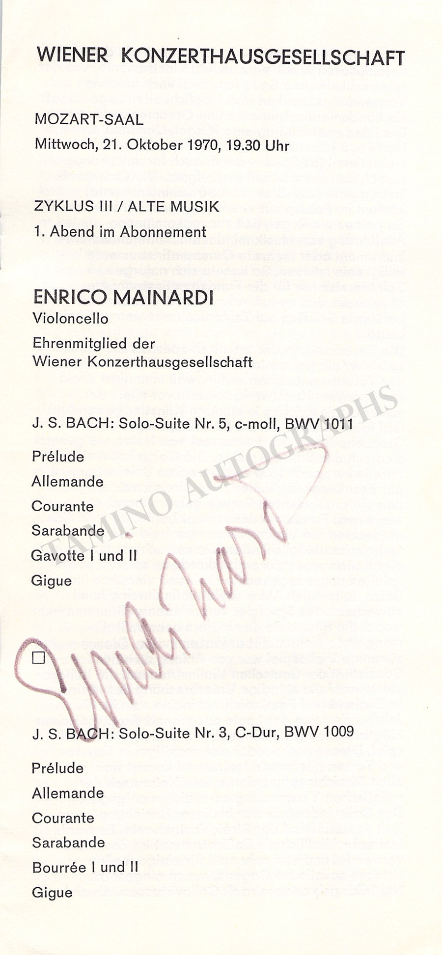 Mainardi, Enrico - Signed Program Vienna 1970 Mainardi, Enrico - Signed Program Vienna 1970 Mainardi, Enrico - Signed Program Vienna 1970