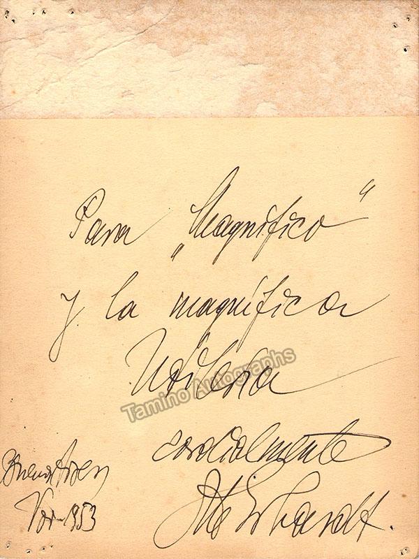 German-born opera stage director (1888-1971) who worked throughout Europe, the U.S and eventually served as the production director at the Teatro Colon, Buenos Aires. Signed photo, shown as himself inscribed. Signature and extensive inscription on verso, signed in Buenos Aires, dated in 1953. Size is 6.5 x 8.5 inches, several bullet holes on corners of photo not affecting the image or text as well as mounting traces on verso. Priced accordingly.
