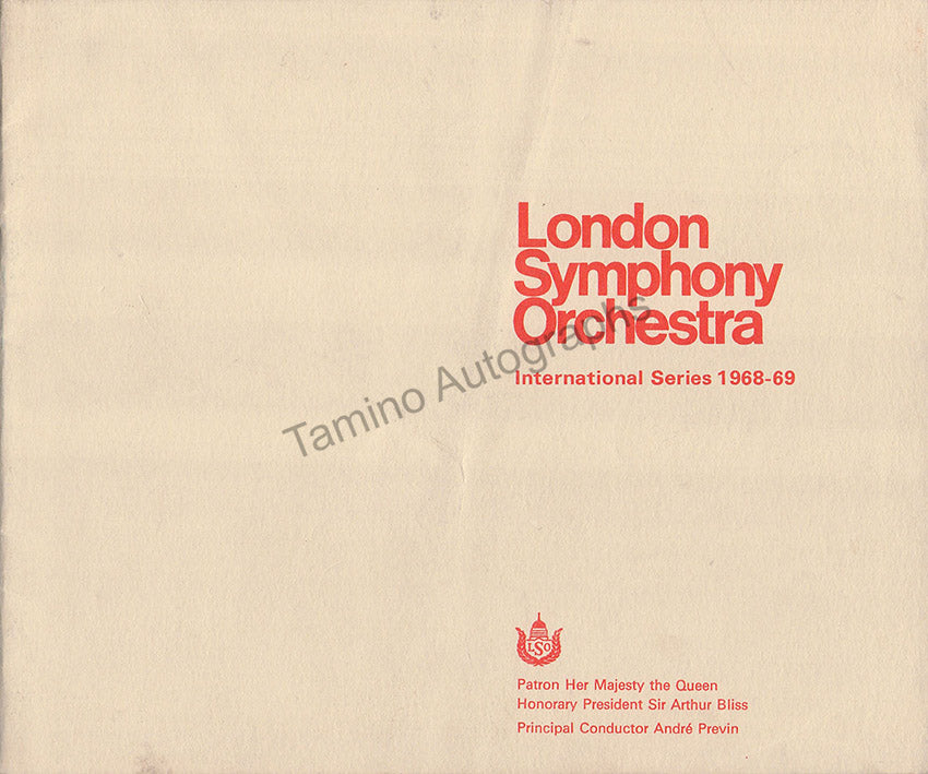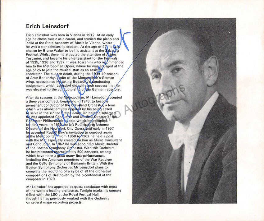 Program for a performance of the star Austrian-American conductor, conducting the London Symphony Orchestra at the Royal Festival Hall, London, on February 13th, 1969; and signed by the conductor on his bio page.