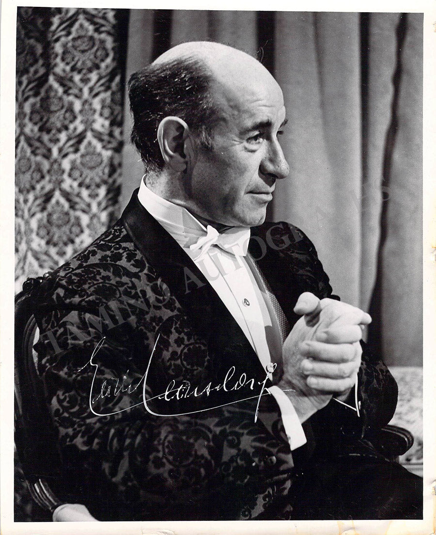 Black-and-white photograph signed by him, shown in rehearsal; ink-stamped on verso by photographer Palffy (Vienna). Size is 6.9 x 5 inches, signature is clearly visible on the actual photo, otherwise in excellent condition.