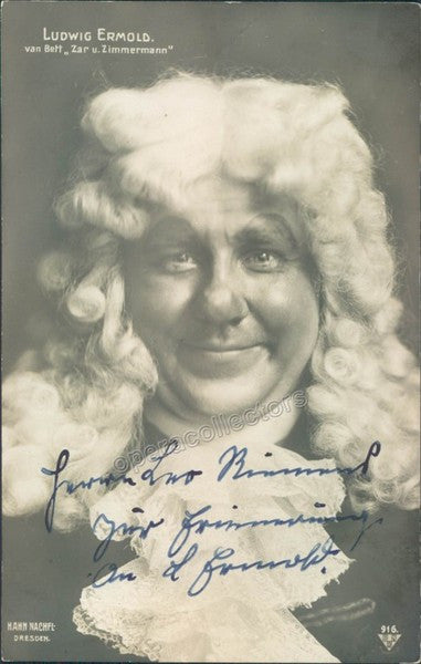 Signed photo postcard of the German bass (1883-1949), shown as Van Bett in Zar und Zimmermann (opera by Albert Lortzing). Size is 3.25 x 5.5 inches, in excellent condition