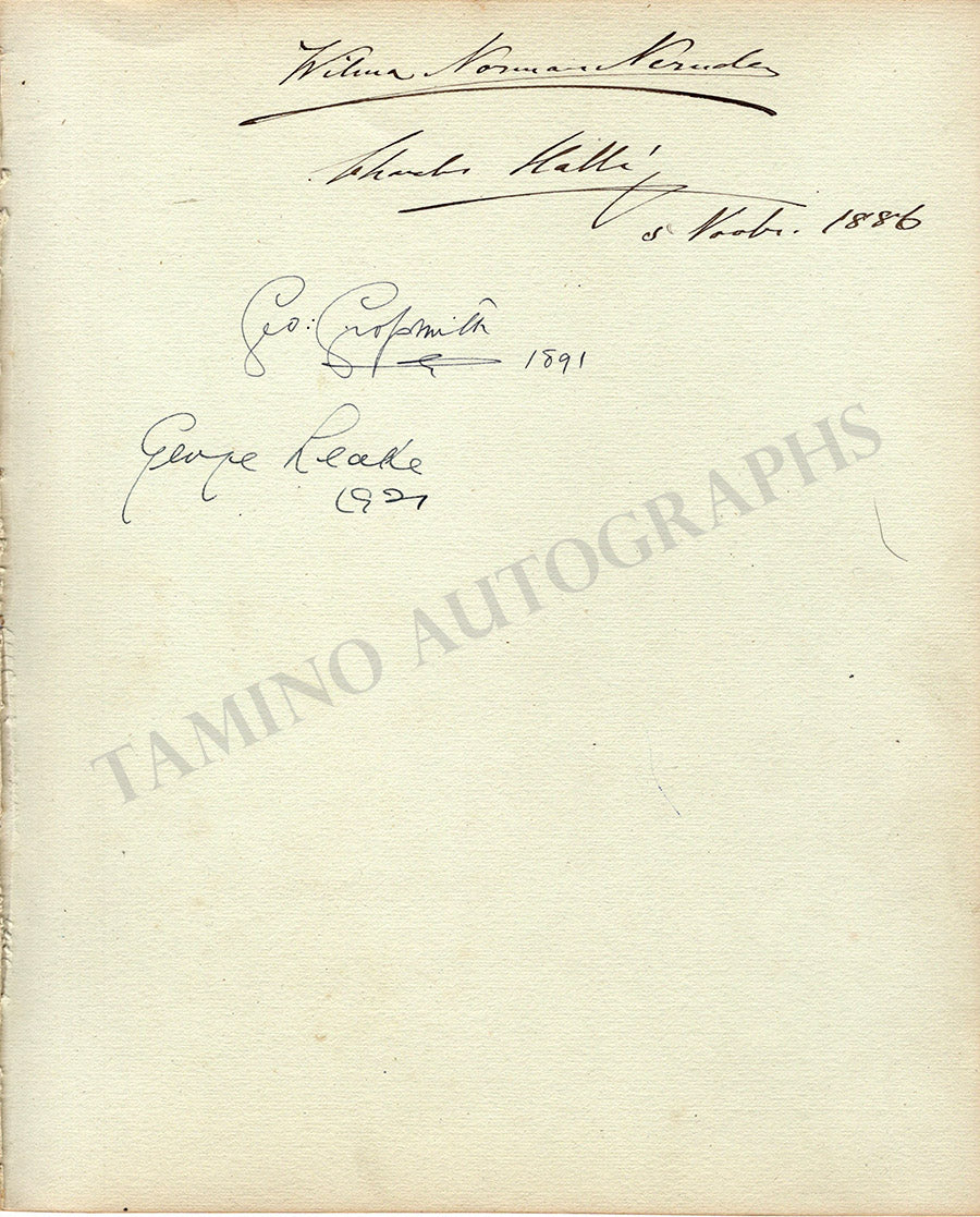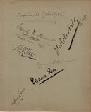 Set of two semihard cardboards signed by Ernest De Munck, Marguerite de Pachmann,  violinist Wilma Neruda, British comedian George Grossmith and other artists such as Eleanor Rees, Sophie Robertson, and others.  Size is 9 x 11.25 inches each, irregularly cut left border, in very good condition.