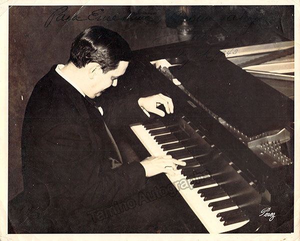 Fine black-and-white photograph signed and inscribed by him with a short sentiment, dated in New York, 1943, shown playing the piano. Size is 10 x 8.1 inches, some creases, otherwise in very good condition.