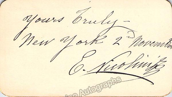 Signed card undated, probably around 1885 in New York. Size is 3.5 x 2 inches, in excellent condition.