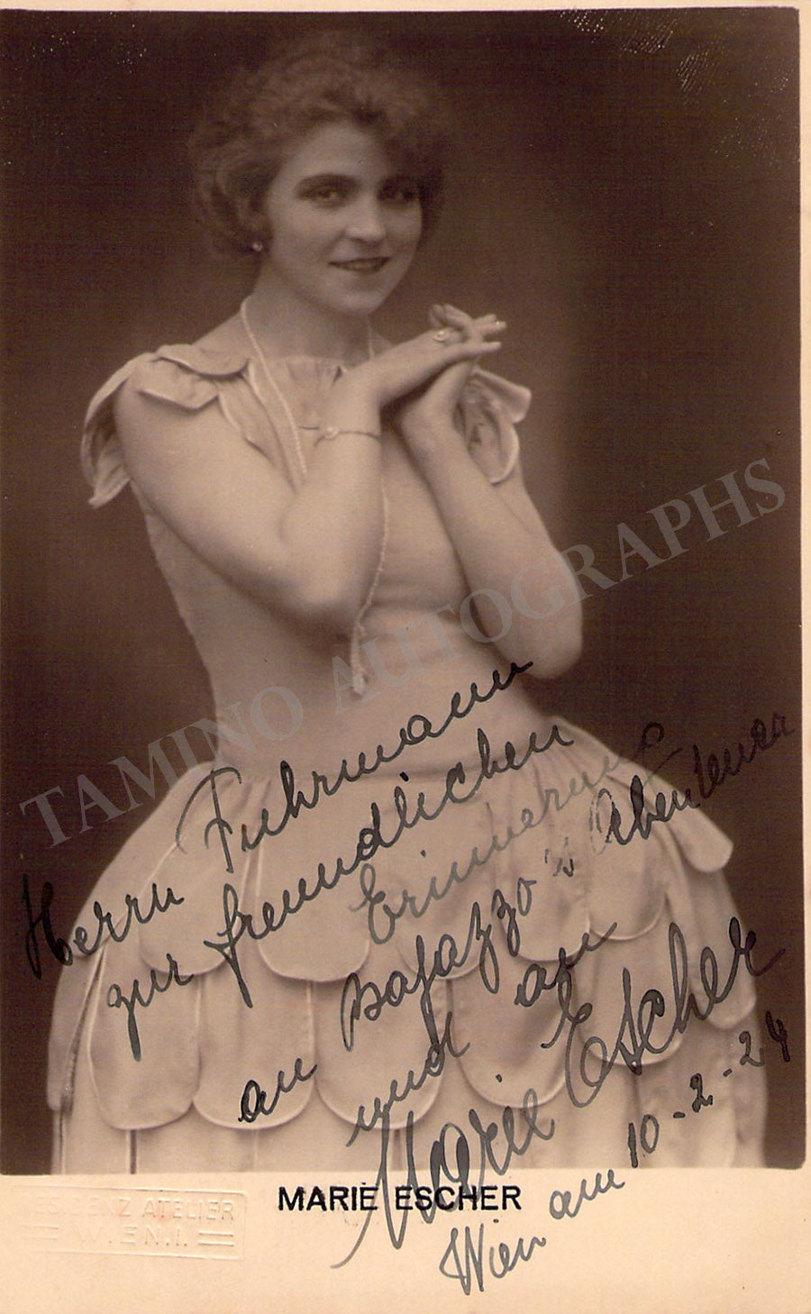 German soprano, signed postcard photograph, shown as herself, inscribed and dated in Vienna in 1924. Blind stamped on front by Residenz photo studio, Vienna. Size is 3.25 x 5.25 inches, beautiful vintage photo in excellent condition.