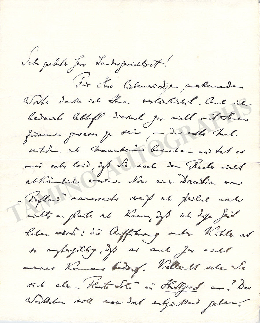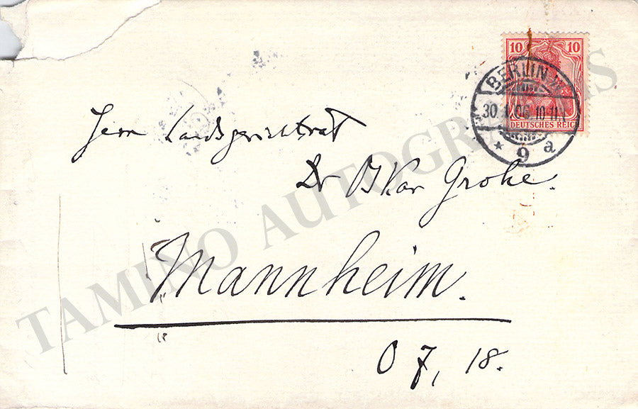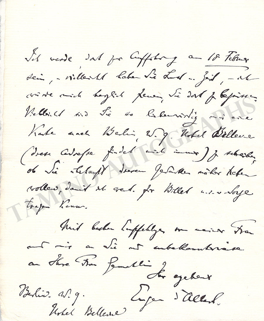 Autograph letter in German (untranslated) signed by him, no date. Size is 5.8 x 7.2 inches, 2 written pages in one sheet (front and back), in excellent condition.