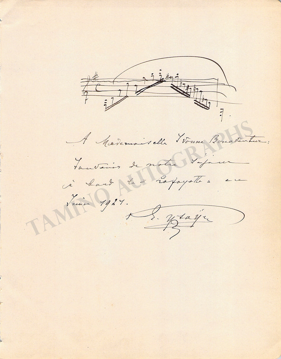 Ysaye, Eugene - Autograph Music Quote Signed 1924