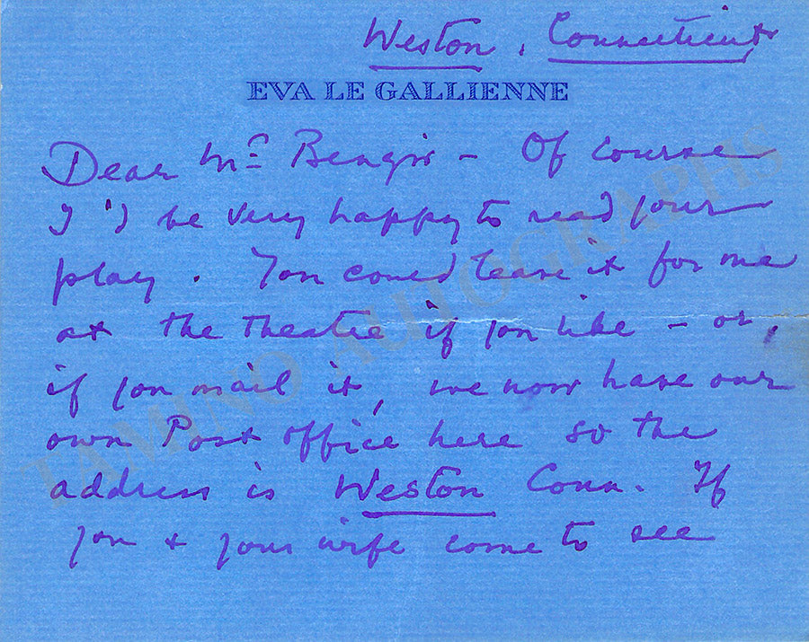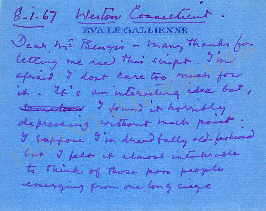 Le Gallienne, Eva - Set of 2 Autograph Letters Signed 1967