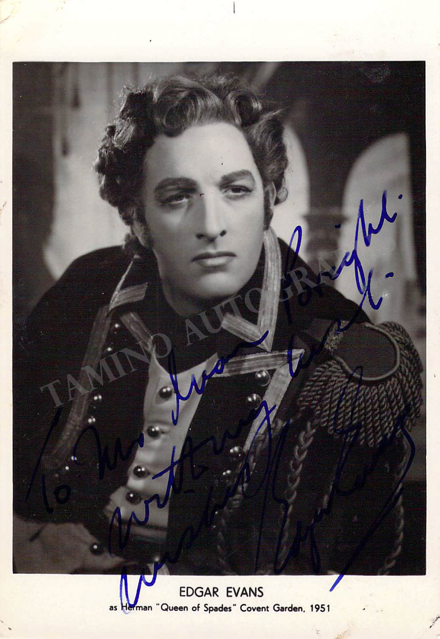 Welsh tenor (1912-2007), signed photograph, shown as Ghermann in Tchaikovsky's Pique Dame, inscribed. Size is 3.5 x 5 inches, some smudges underneath the photo (not in the text), otherwise in excellent condition