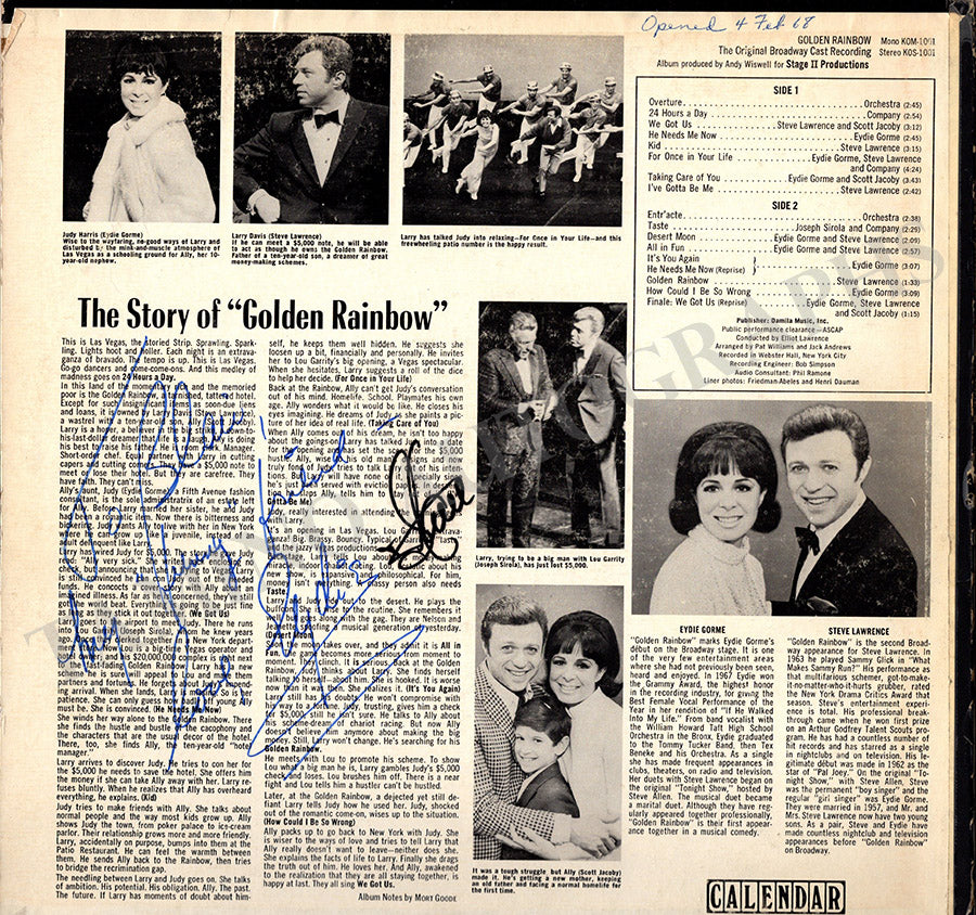 Gorme, Eydie - Lawrence, Steve - Signed LP Record "Golden Rainbow"