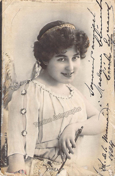 Fine black-and-white photo postcard signed by her, shown in role; blind-stamped on the front by photographer Klary (Brussels). Size is 3.3 x 5.3 inches, some scratches, in overall very good condition.
