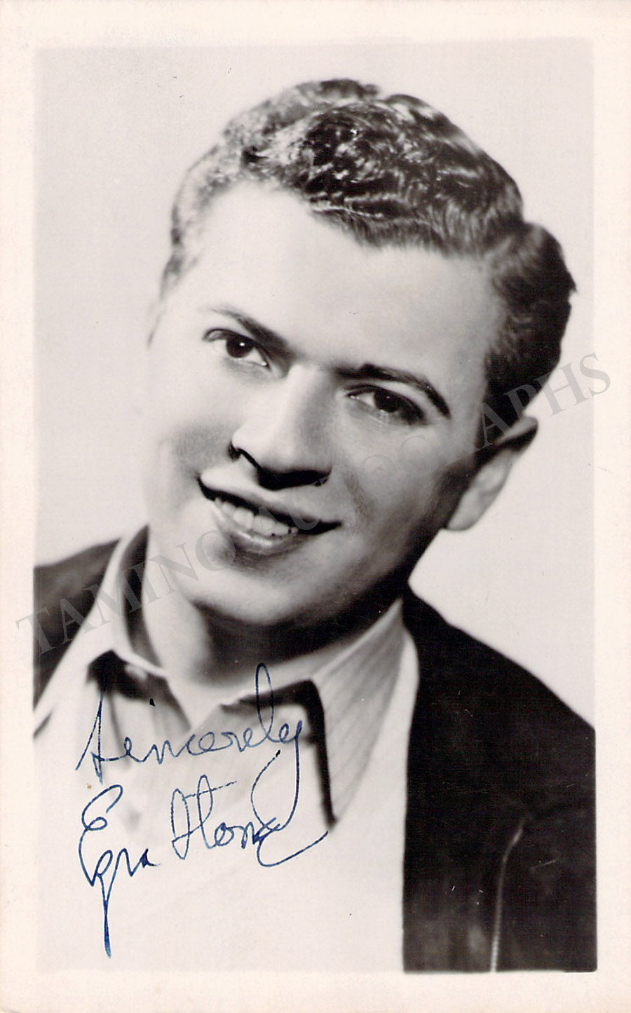 black-and-white photo postcard signed by him with a short sentiment. Size is 3.3 x 5.3 inches, in excellent condition.