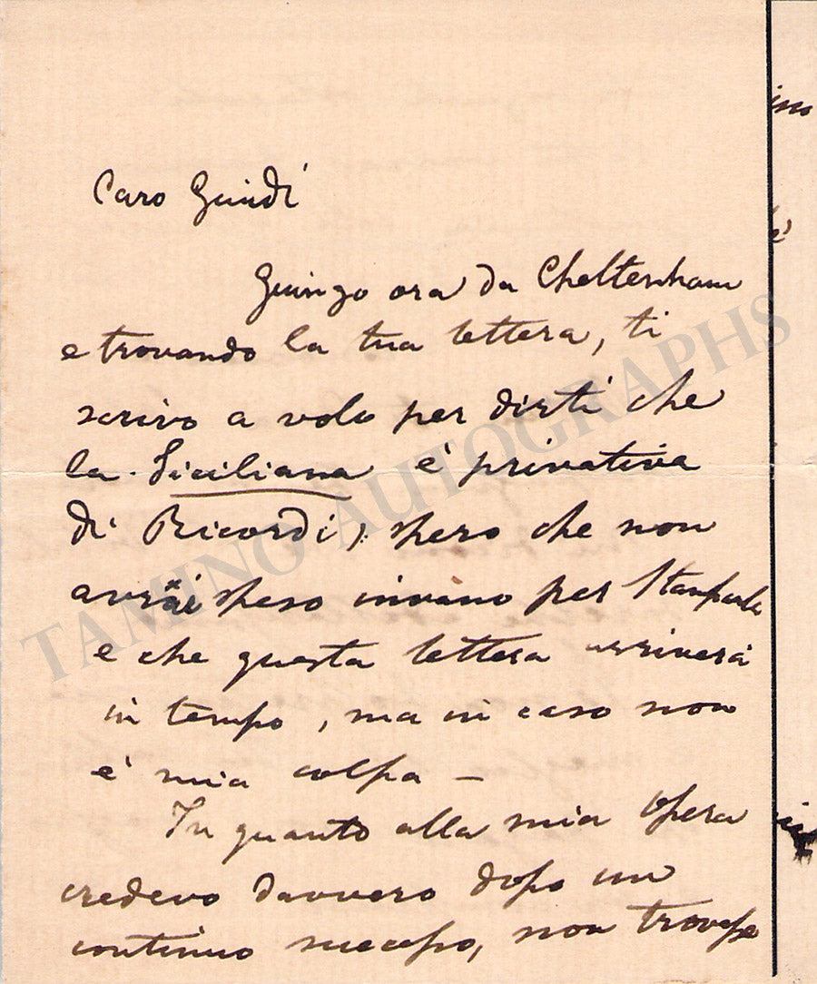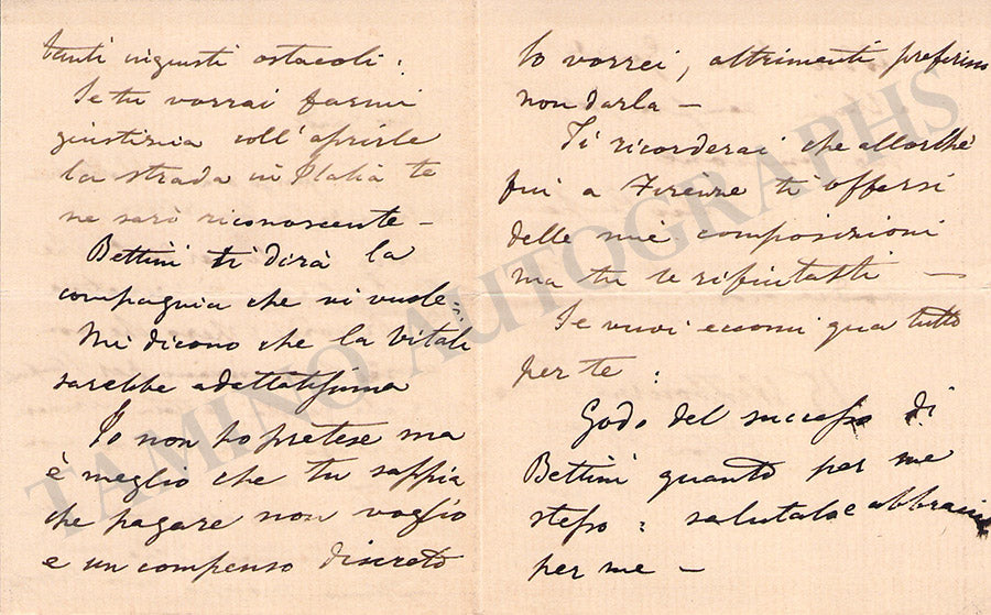 Autograph letter in Italian (untranslated) signed by him. Size is 3.3 x 4.3 inches, four written pages, in very good condition.