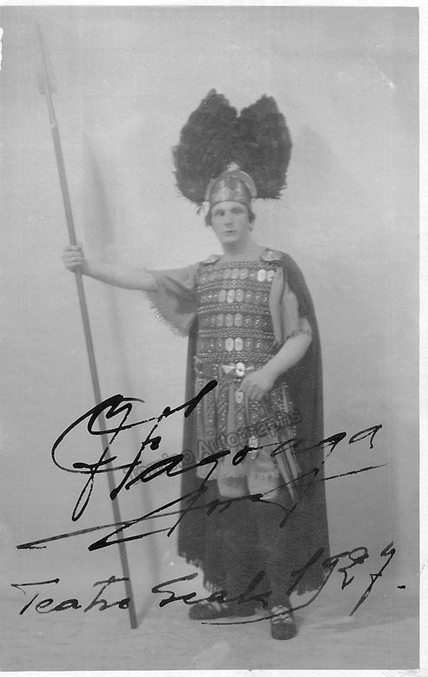 Spanish tenor (1895-1976), signed photo, shown in role at La Scala, Milan. Signed and dated in 1929. Size is 3.3 x 5.1 inches with small crease at top left not affecting the signature. Otherwise in excellent condition.