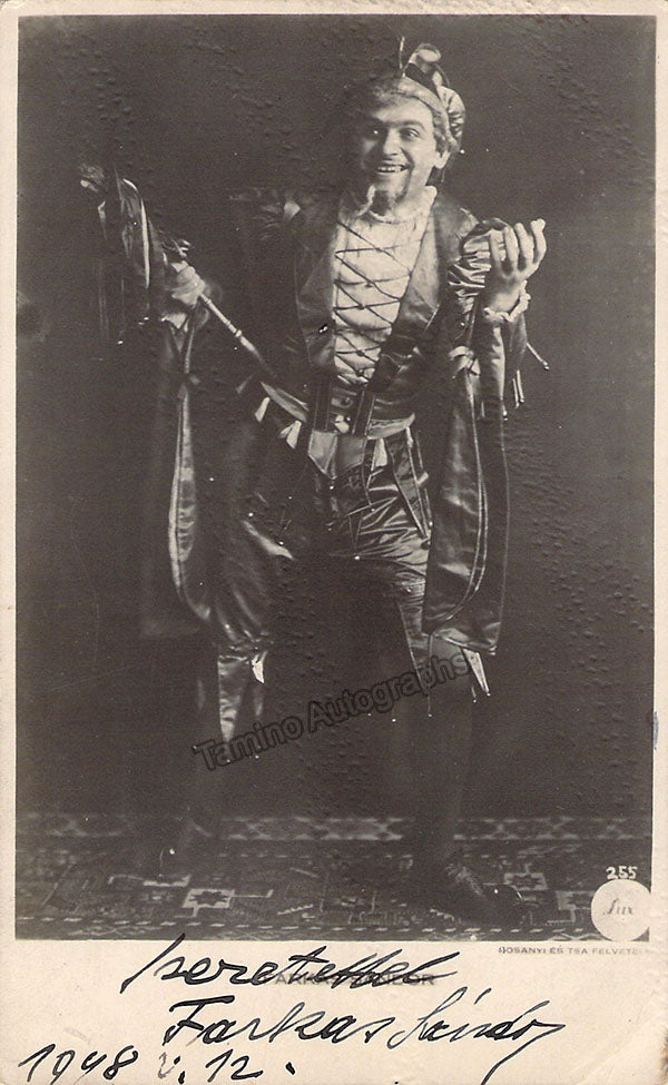 Hungarian baritone (1888-1970), signed postcard photograph, shown in title role of Verdi's Rigoletto. Size is 3.25 x 5.5 inches, small crease on bottom right, otherwise in very good condition.