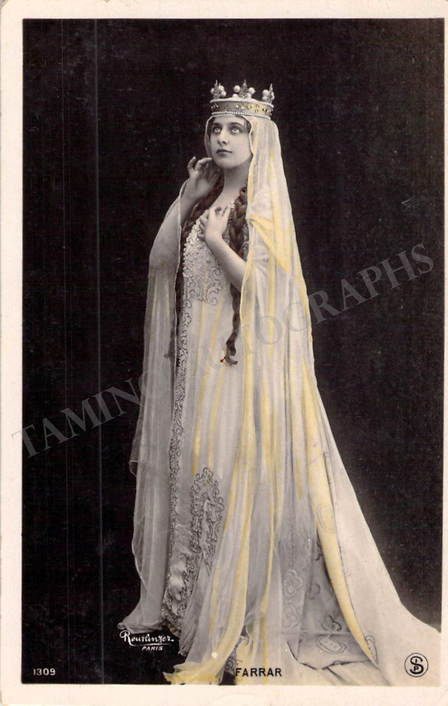 Fine black-and-white photograph signed by her with a short sentiment in Philadelphia, 1956, shown here as Elsa in Wagner's 'Lohengrin' at Berlin, 1905. Size is 7.8 x 11.1 inches, silvering around borders, in overall very good condition.