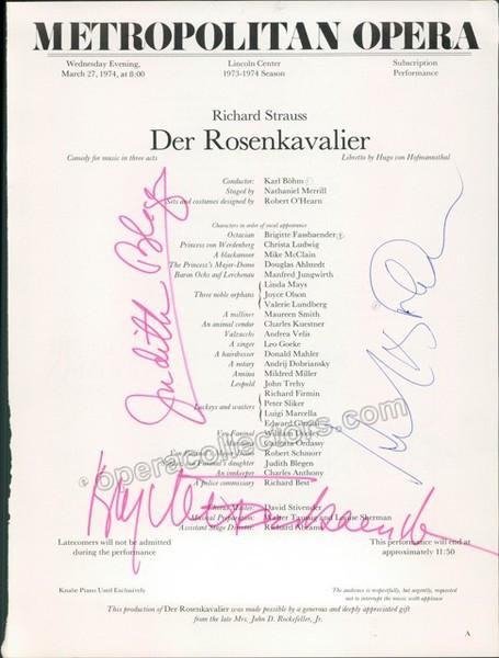 Der Rosenkavalier at Met Opera, 1974, cast page only, signed by 2 singers plus one unidentified signature