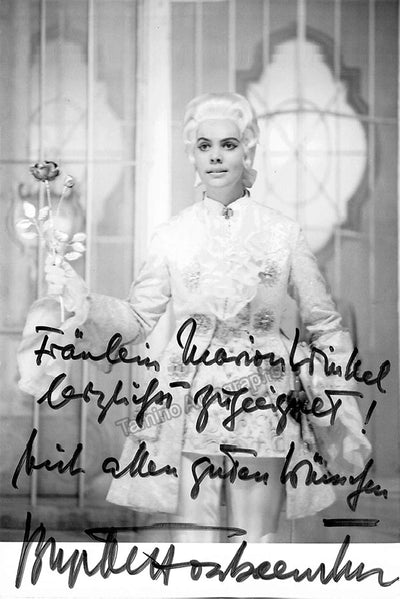 Signed postcard photograph, shown as Octavian in Richard Strauss's Der Rosenkavalier, inscribed. Stamped on verso by photographer Sabine Toepffer, Munich. Size is 4 x 5.75 inches, in excellent condition.