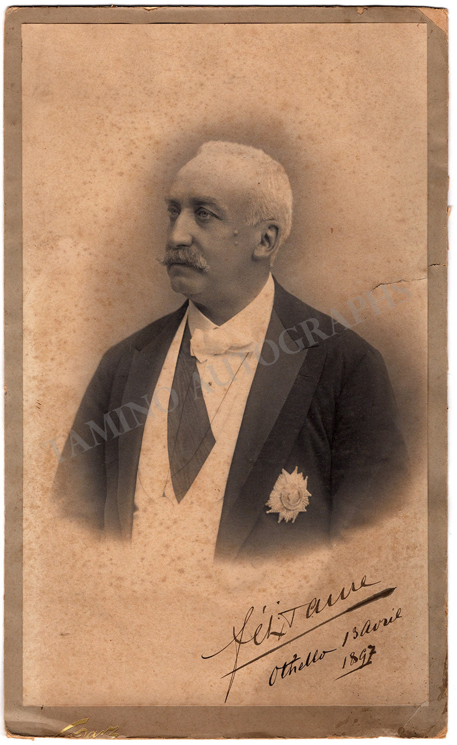 Black-and-white photograph signed and dated by him in 1897. Size is 7.75 x 12.8 inches, repaired cracks on the mat (visible only on the verso, and some on the front), spotted rust, in overall good condition.