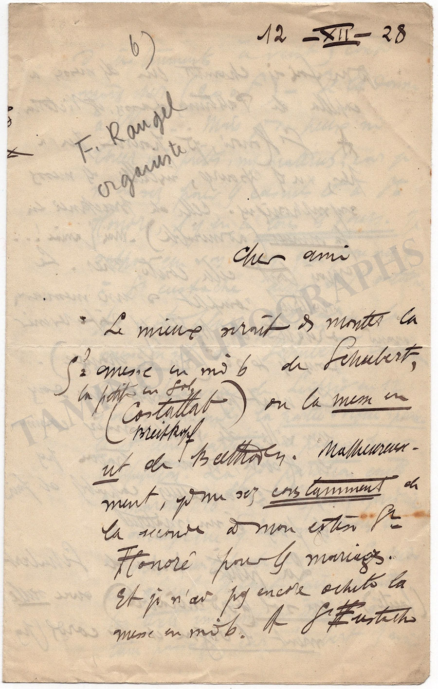 B. 12-XII-28. To a gentleman, concerning upcoming concerts and their programs. 4 pp. In-8.