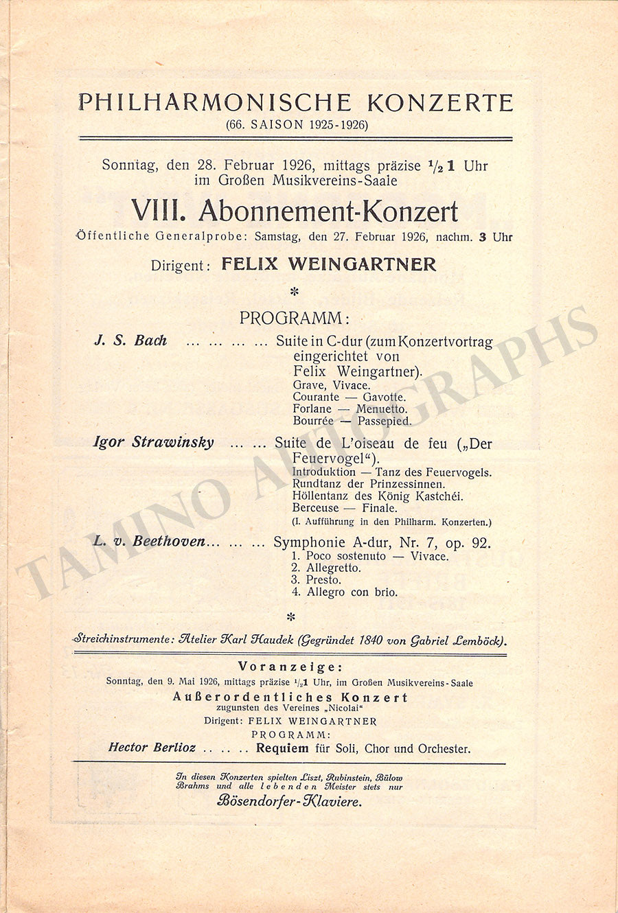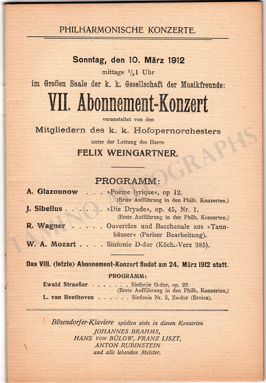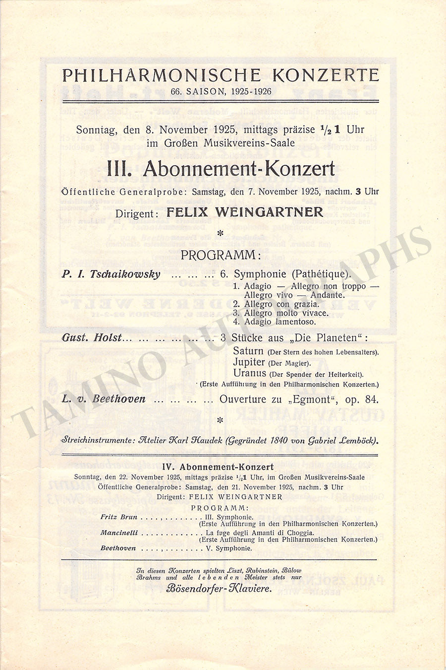 Weingartner, Felix - Set of 5 Concert Programs Vienna 1912-1926