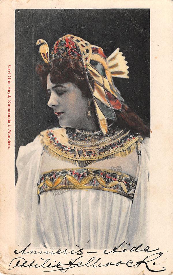 German contralto (1877-1913), signed photo postcard, shown as Amneris in Aida. Size is 3.5 x 5.6 inches, in very good condition.