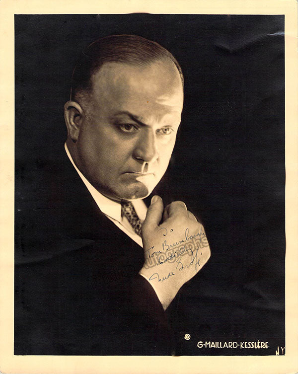 Black-and-white photograph signed and inscribed by him, ink-stamped on verso by photographer Maillard-Kesslere.  Size is 7.9 x 9.9 inches, minor creases, in very good condition.