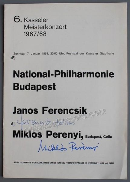 Janos Ferencsik and Miklos Perenyi signed program, Budapest National Orchestra, January 7, 1968, Stadthalle Kassel
