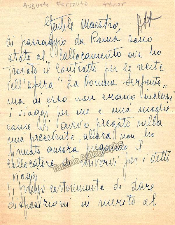 Ferrauto, Augusto - Autograph Letter Signed - Tamino Ferrauto, Augusto - Autograph Letter Signed - Tamino
