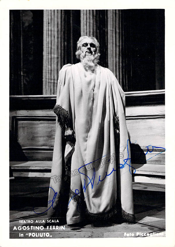 Signed postcard photograph, shown in role in Donizetti's Poliuto at La Scala, Milan. Photo by E. Piccagliani, Milan. Size is 4 x 5.75 inches, in excellent condition.