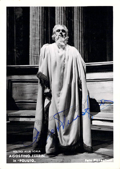 Signed photograph, shown as Assur in Rossini's Semiramide, inscribed and dated in 1963. Photo by Piccagliani, La Scala, Milan. Size is 4 x 5.75 inches, in excellent condition.