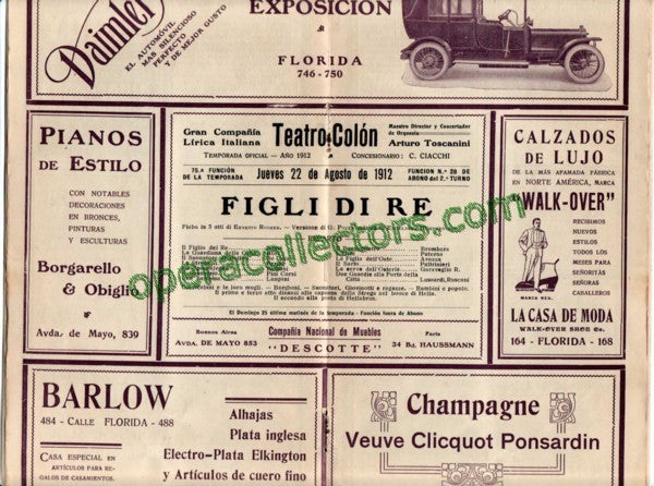 FIGLI DI RE - August 22-1912. Teatro Colon program with Lucrezia Bori and Giuseppe De Luca. Conductor: Arturo Toscanini