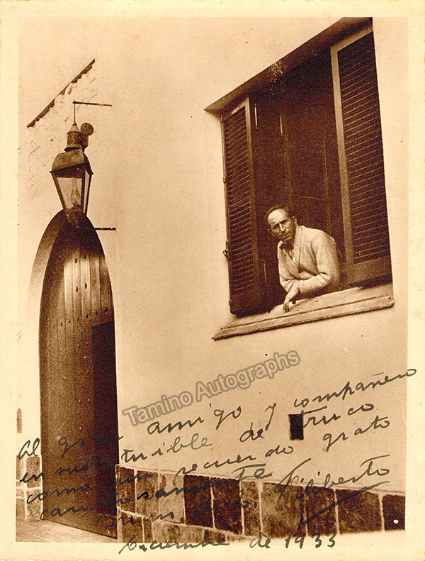 Argentinian tango composer, violinist, and conductor (1885-1964). Signed photograph, shown most likely at home, extensively inscribed and dated in 1933. Size is 7 x 9 inches, in very good condition.
