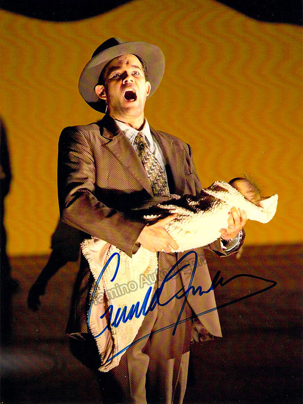 Canadian baritone (b.1960), nice color signed photograph, shown as Robert Oppenheimer, the title role of John Adam's Doctor Atomic. Size is 5 x 6.75 inches, in excellent condition.