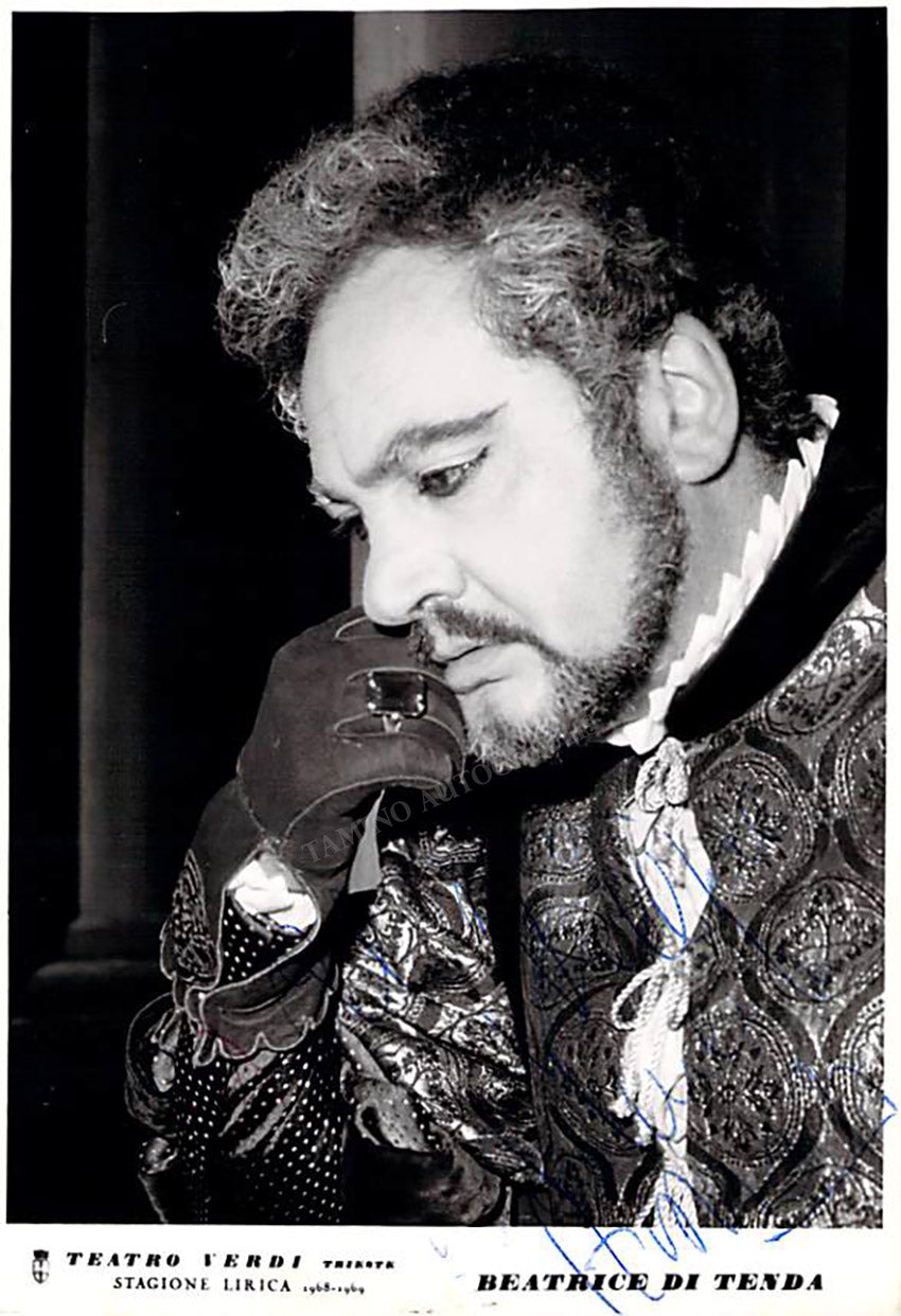 Signed photograph, shown in role (possibly Iago in Verdi's Otello). Size is 4 x 5.75 inches, in excellent condition.