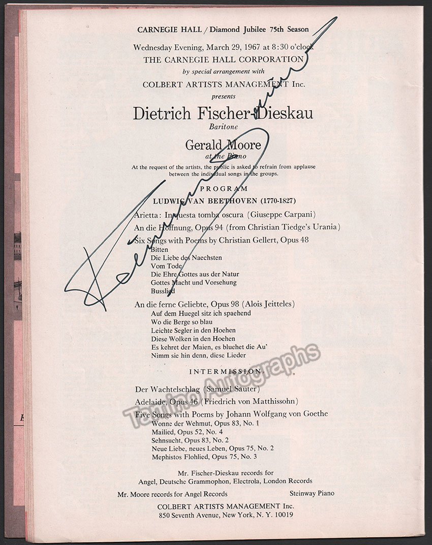 Fischer-Dieskau, Dietrich - Set of 3 Signed Concert Programs 1964-1967 - Tamino Fischer-Dieskau, Dietrich - Set of 3 Signed Concert Programs 1964-1967 - Tamino Fischer-Dieskau, Dietrich - Set of 3 Signed Concert Programs 1964-1967 - Tamino