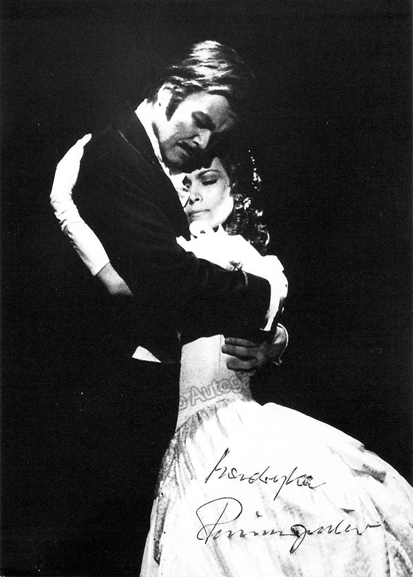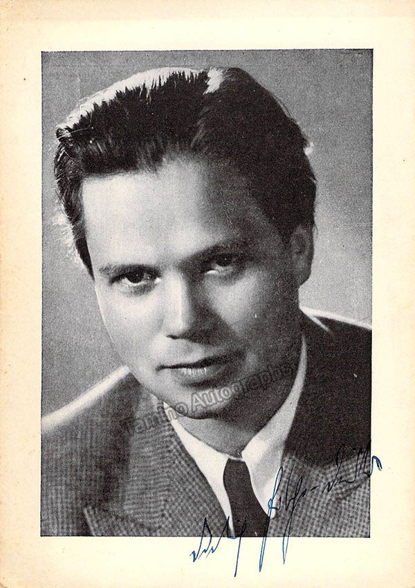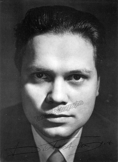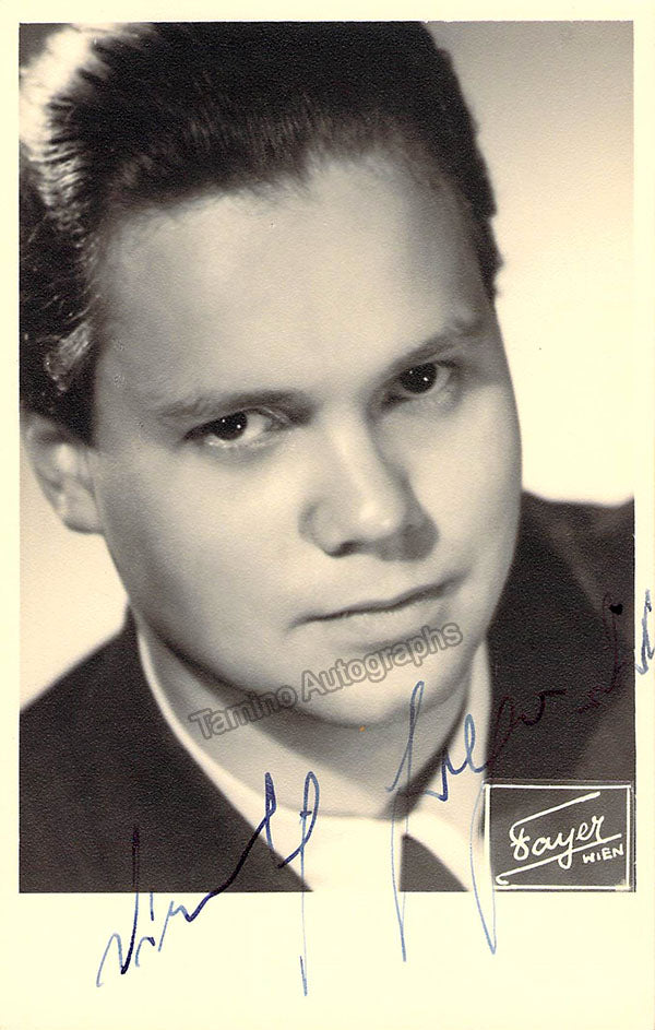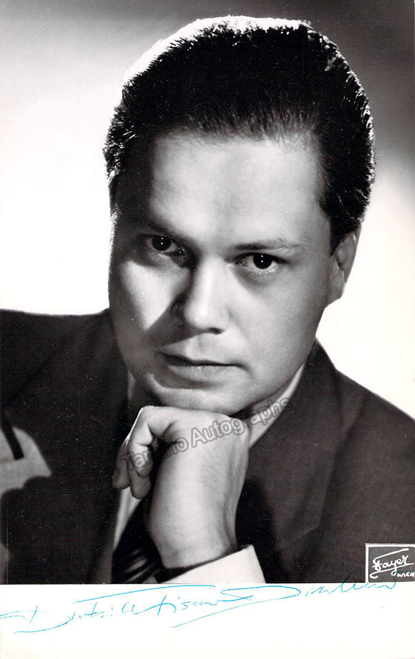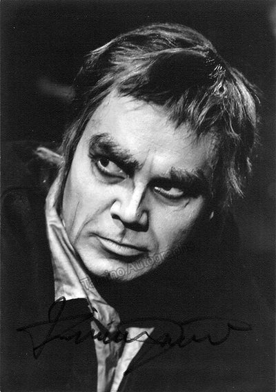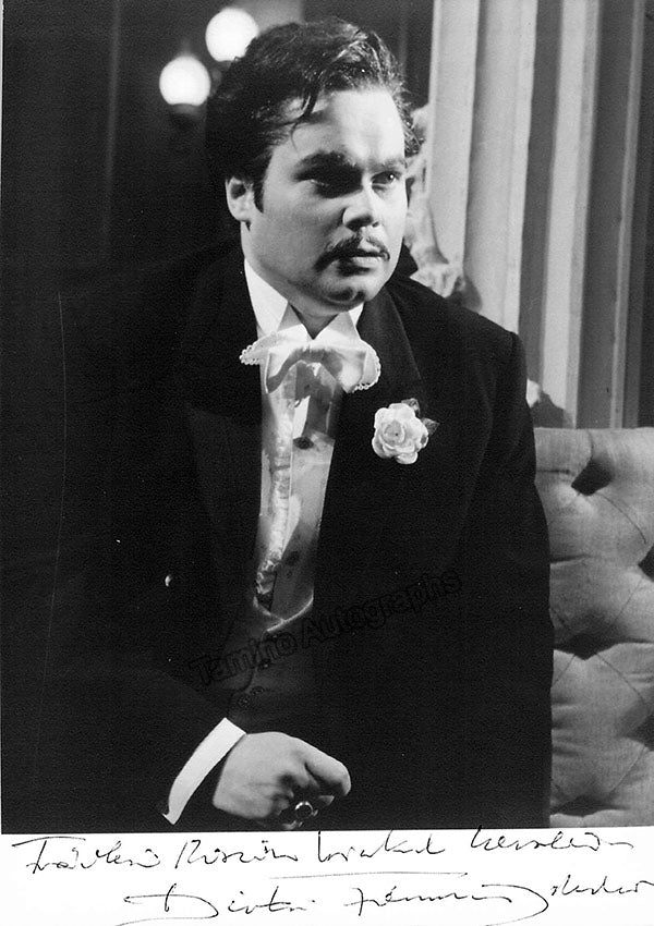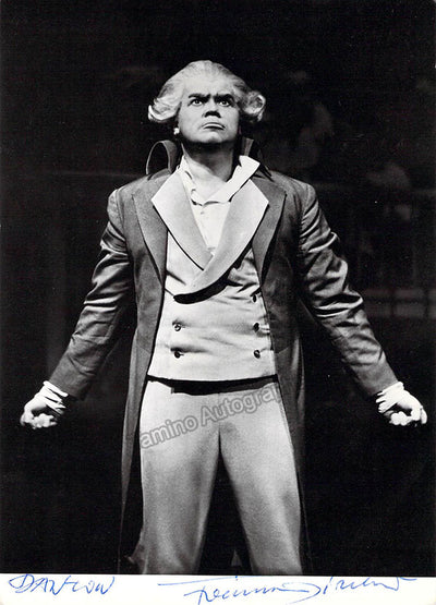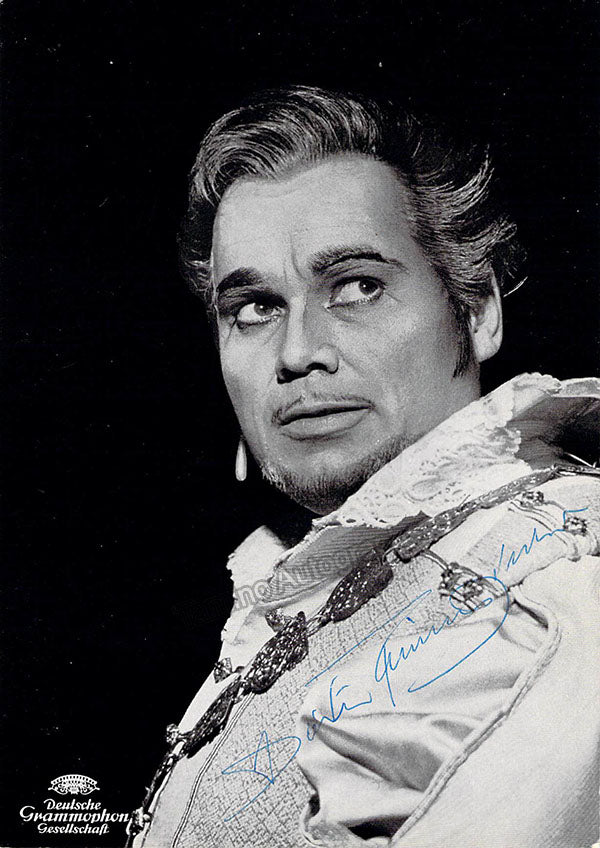 Signed photograph, shown in the title role of Mozart's Don Giovanni. Photo by Harri Irmler, Berlih. Size is 4 x 5.75 inches, very slight paper loss on edges, otherwise in excellent condition.