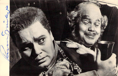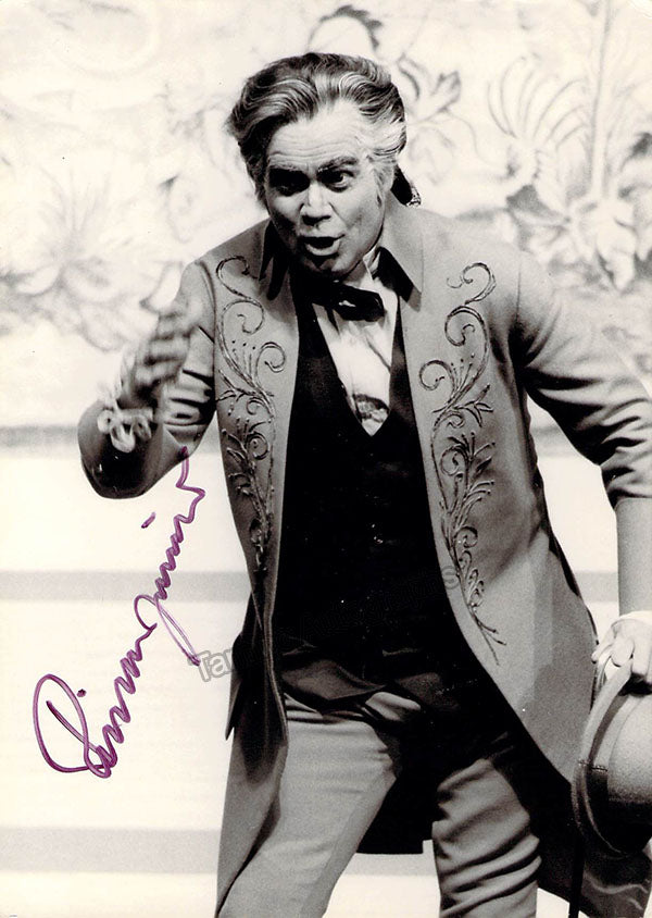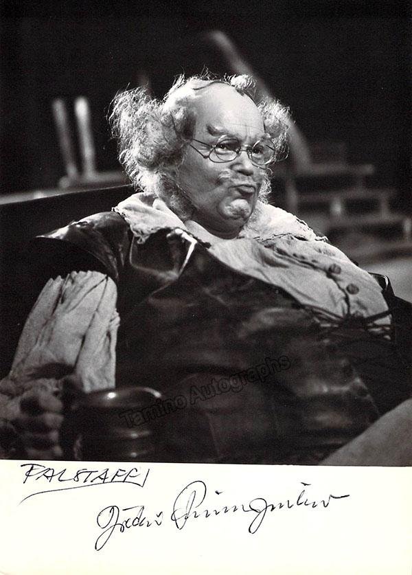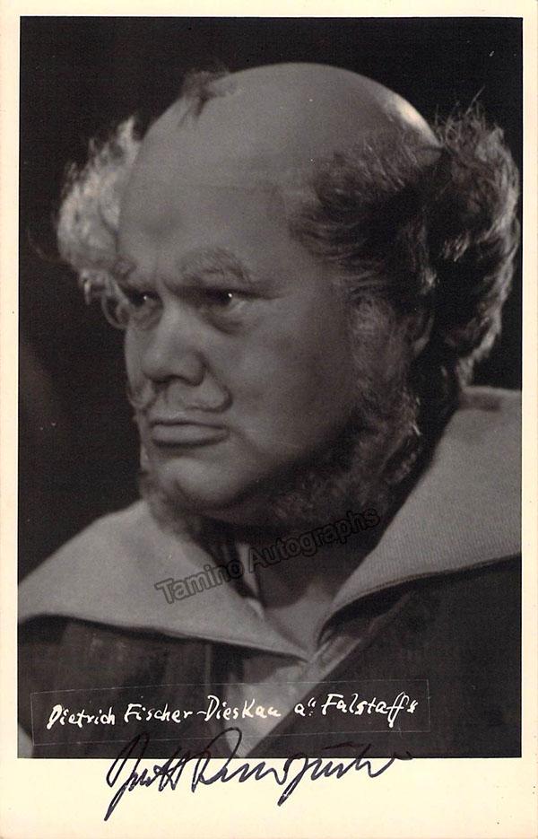 Signed photograph, shown in title role of Verdi's Falstaff. Photo by Ilse Buhs. Size is 4 x 5.75 inches, mounting traces on verso, otherwise in excellent condition.
