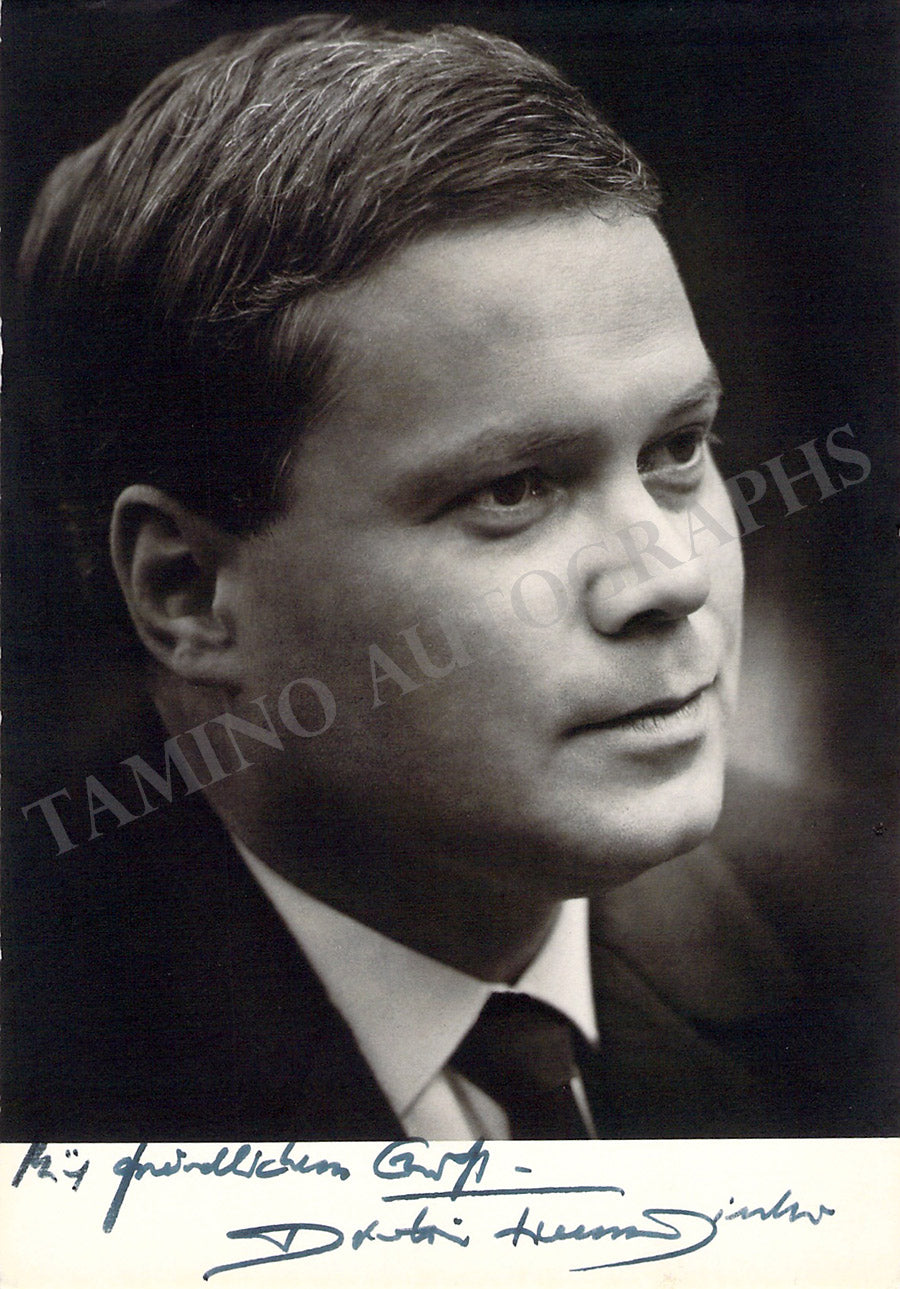 Signed photograph, shown in role in Gottfried von Einem's opera Danton. Stamped on verso by photographer Ilse Buhs, Berlih. Size is 4.25 x 5.75 inches, in excellent condition.